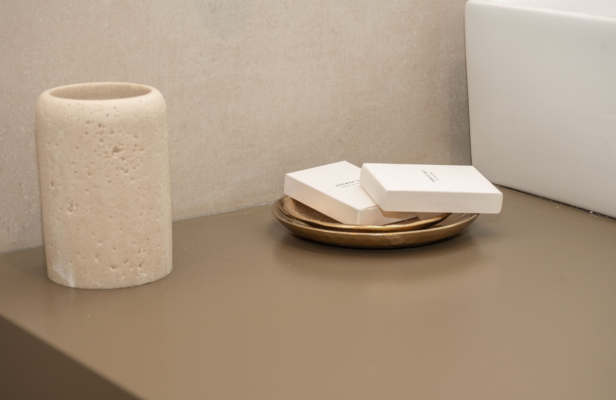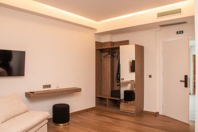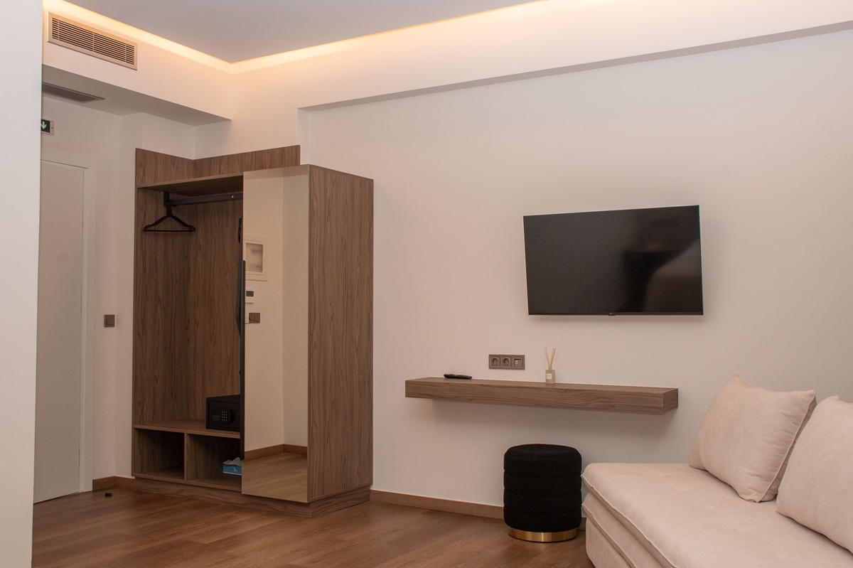 Η διακόσμηση με συνδυασμό στοιχείων όπως ξύλο, μάρμαρο και γυαλί προσφέρουν μία αίσθηση ηρεμίας και ζεστασιάς σε κάθε σουίτα, δημιουργώντας ένα καταφύγιο χαλάρωσης μέσα στην καρδιά του ιστορικού κέντρου του Μεσολογγίου.